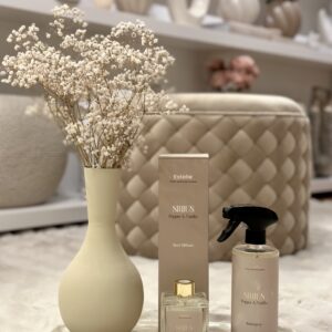 Een luxe schaal in organische vorm, onze bestverkochte huisparfum set (diffuser & roomspray) en een bijpassende vaas in mat beige. Dankzij de zachte neutrale tinten past de set moeiteloos in ieder interieur.